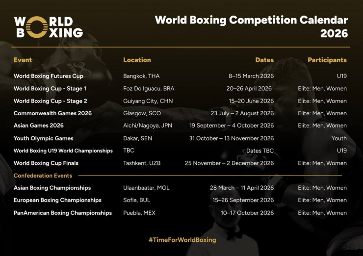Халықаралық World Boxing бокс федерациясы 2026 жылғы жарыстар күнтізбесін жариялады, деп хабарлайды Vesti.kz.