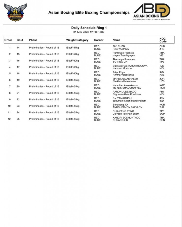 Бүгін, 31 наурызда Моңғолияның Ұлан-Батыр қаласында World Boxing ұйымының қолдауымен өтіп жатқан бокстан Азия чемпионатының екінші жарыс күні өтеді, деп хабарлайды Vesti.kz.