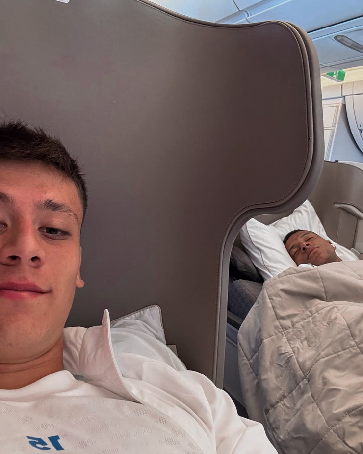 Жарияланған суретте Арда Гюлердің өзі және ұшақта ұйықтап жатқан Килиан Мбаппе.