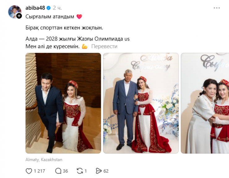«Сырғалым атандым. Бірақ спорттан кеткен жоқпын. Алда — 2028 жылғы Жазғы Олимпиада. Мен әлі де күресемін», - деп жазды дзюдошы threads желісіне.